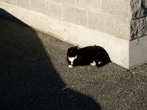 He was very friendly, letting me pet him and rubbing up against my legs, alerted no doubt by the Chloe and Cleo fur already clinging to me that I am a cat person.